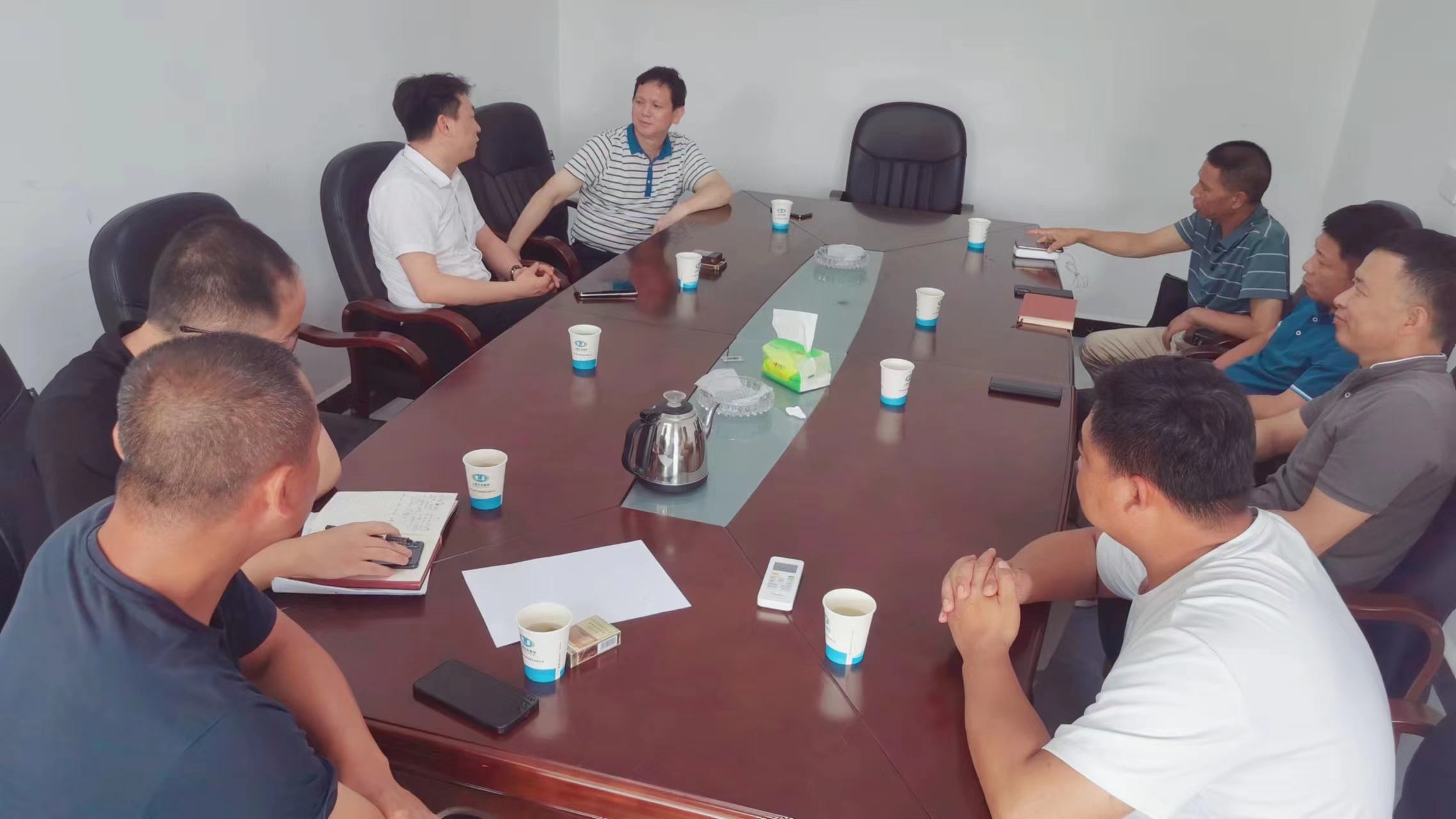 6月16日上午湖南建投旗下湖南交通國際經(jīng)濟(jì)工程合作有限公司黨委副書記彭敏、國晟環(huán)境董事長郭偉、總經(jīng)理肖錦云帶領(lǐng)湖南國晟環(huán)境有限公司主要負(fù)責(zé)人一行,對銘煌科技與湖南交通國際經(jīng)濟(jì)工程合作有限公司混改的湖南國晟環(huán)境有限公司江背生產(chǎn)基地進(jìn)行考察,與銘煌科技執(zhí)行董事蔡炳煌就金礦選礦尾料處理和綜合利用,利用礦山尾料作為主要原材料,開發(fā)和生產(chǎn)新型免蒸壓水泥發(fā)泡墻體及市政交通預(yù)制構(gòu)件,及在江背建設(shè)技術(shù)中心和生產(chǎn)基地、新產(chǎn)品市場規(guī)劃進(jìn)行深入探討交流。