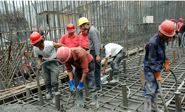 2、柱墻混凝土應分層澆筑振搗,每層澆筑厚度控制在500mm左右?;炷料铝宵c應分散布置循環(huán)推進,連續(xù)進行。